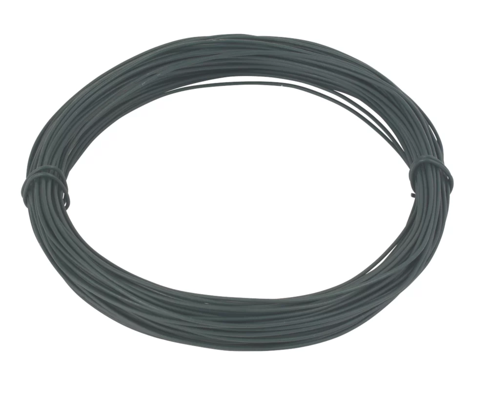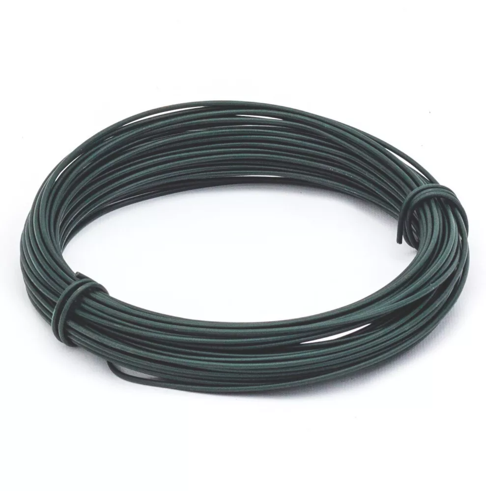 Heavy duty PVC coated garden wire for supporting plants and vegetables or securing wire fencing to posts.