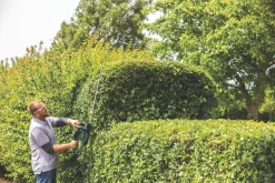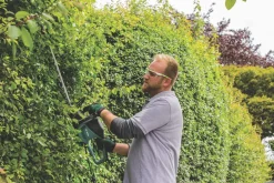 Features 500W motor for powerful performance with reduced energy demand, and ProSilence 93 dB sound-dampening shell to provide quieter operation than previous models. Laser-cut, diamond-ground blade with 34mm tooth opening and 50-70 Nm high-torque slipping clutch allow fast and effortless cutting through thicker branches up to 34mm without damage to the motor. Ideal for trimming stubborn branches and medium to large hedges such as conifer, laurel, English yew, beech, holly, hornbeam, leylandii and viburnum.