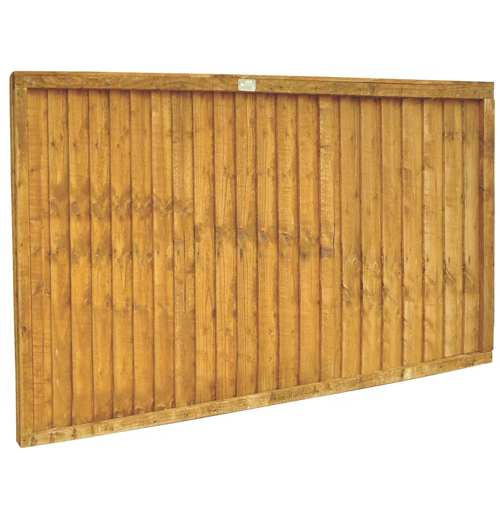 Sturdy and secure fence panels featuring 8mm thick, overlapping square-cut boards. Arranged vertically and sandwiched by a frame all around.