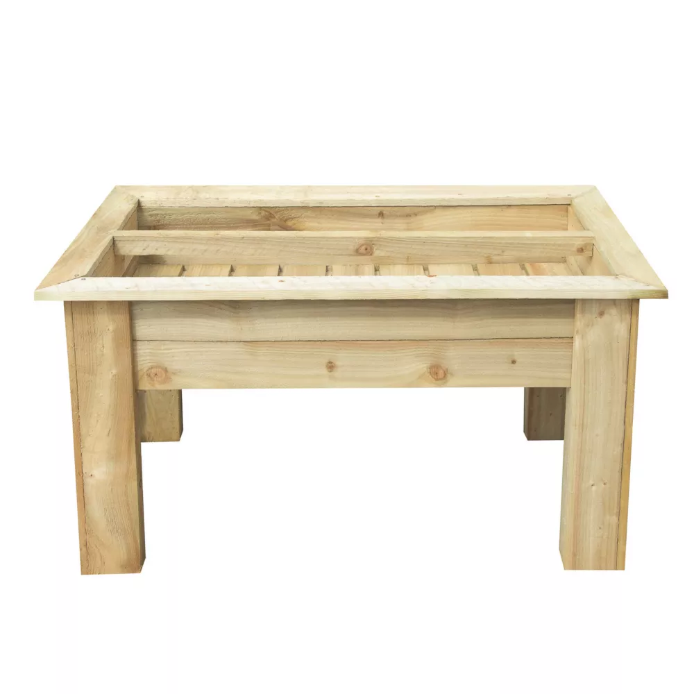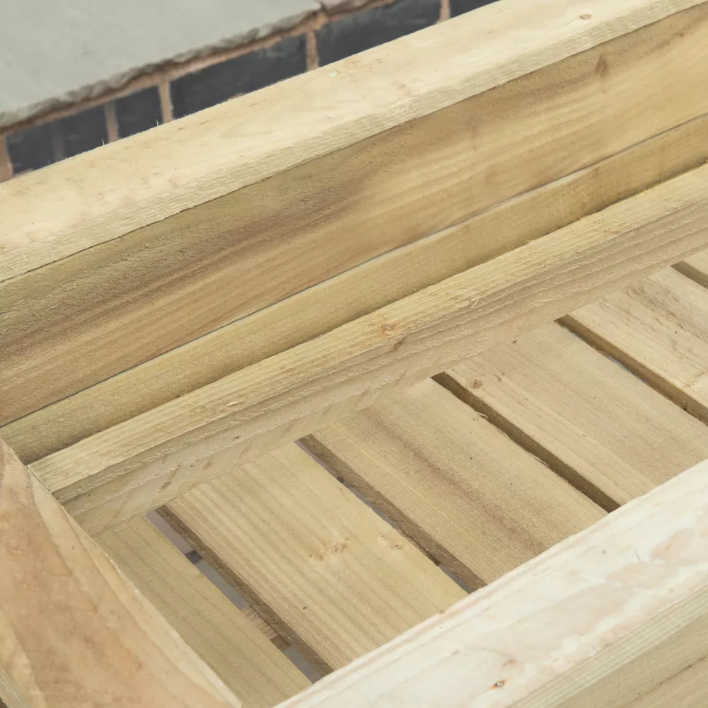 Creates a decorative feature for any outdoor space, enclosing unsightly growbags and making the tending of crops more accessible. Designed around the standard 40 x 100cm grow bag tray and grow bag. Strong and sturdy container makes the planting, growing, tending and cropping of tomatoes easier by raising everything up to a more convenient height. Support canes are secured by a convenient cross-bar. Also reduces the staining that comes with having grow bags on the patio, particularly if the base is lined. Supplied flat-packed and is quick and easy to assemble. Wood is pressure-treated to protect against rot. Grow bag and tray not included.
