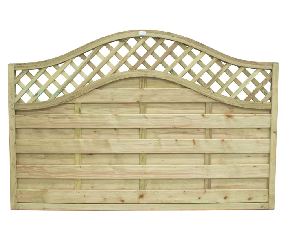 Softwood. Stylish and decorative fence panels with a curved trellis design.