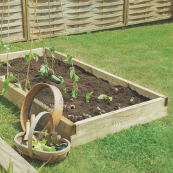 Quick and easy way of establishing a useful bed for growing a variety of vegetables or other plants in a narrow space. Notched ends for easy assembly with attractive half-lap joints at each corner. Line planter with membrane before adding soil to grow food produce.