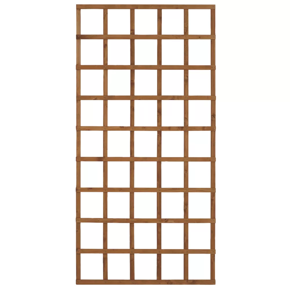 Traditional, smooth-planed square trellis with 15mm thick by 30mm wide battens which give plenty of room for climbing plants to weave between. Dip-treated with a preservative to protect it from rot and give it a golden brown colour. Suitable for mounting to a wall or fence to create a feature and train climbing plants.