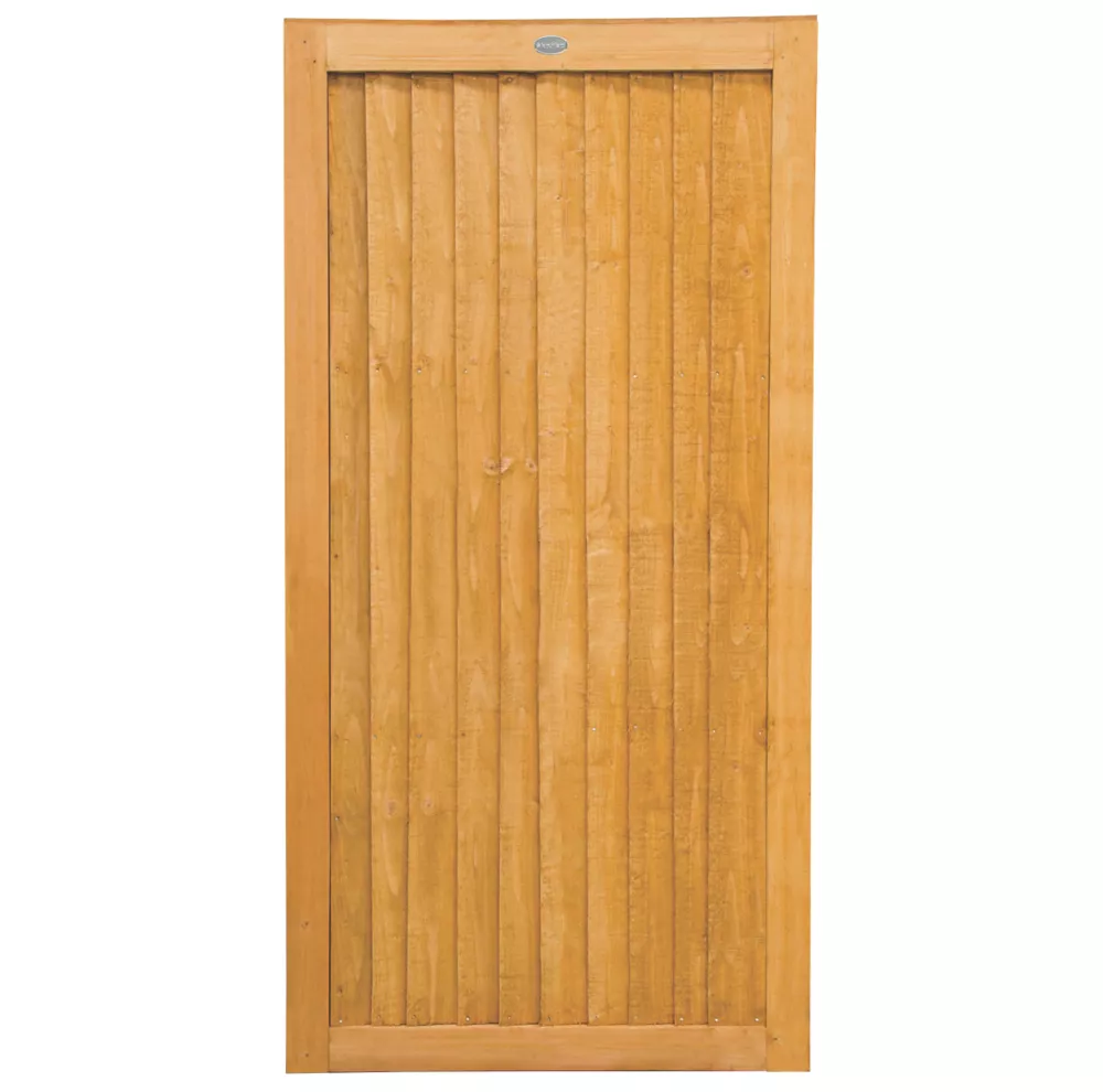 Traditional closeboard design suitable for any style garden. Strong and robust, ideal for use in a panel run or as a side gate. Timber is dip-treated and finished in a golden brown colour.