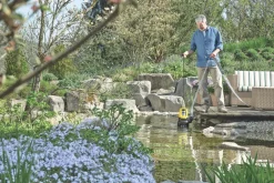 High-performance submersible dirty water pump with a capacity of up to 258.33Ltr/min. Pumps water with dirt particles up to 30mm and has an integrated, stainless steel pre-filter to prevent blockages from larger particles. Can be set to continuous operation and reliably pumps out up to a residual water height of 35mm, both in continuous and automatic mode. Features an adjustable level sensor that starts the pump immediately upon contact with water and if the water falls below sensor level the pump automatically shuts down after 15 seconds. Stainless steel casing and robust slide ring sealing for longevity. Quick and easy connection of 1, 1¼ and 1½” hoses assured with Quick Connect connection threads. Ideal for drainage of garden ponds and flooded areas with a maximum capacity of 100 m³. Not suitable for continuous use in fish ponds.