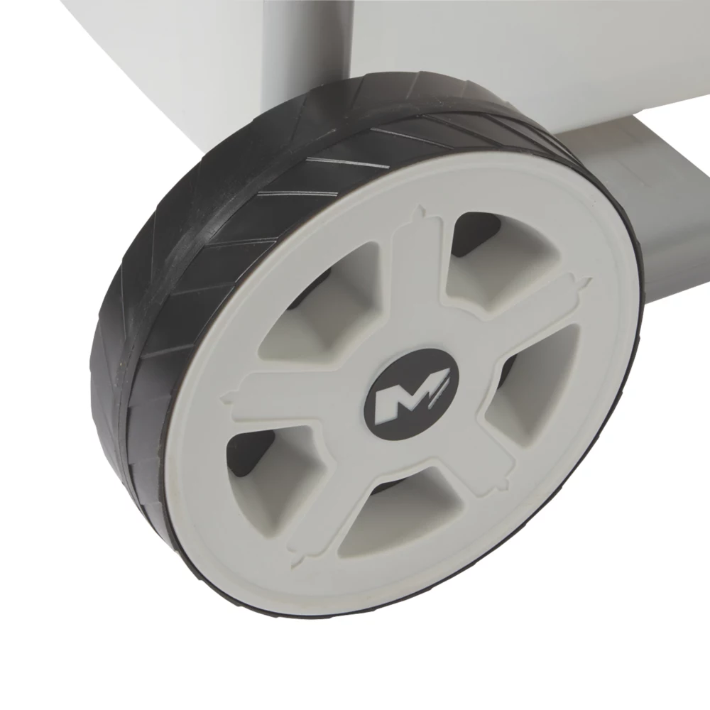 Features an interlock mechanism that prevents accidental starts, allowing safe access and handling. Shredder only works when the collection box has been inserted. Quiet operation assured with a blade drum system. Supplied with wheels for easy transportation.