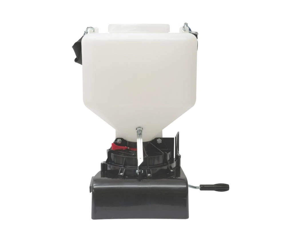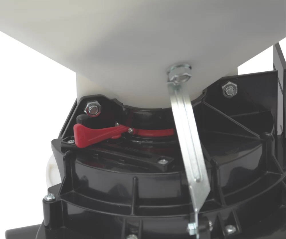 Integral agitator ensures even distribution onto the steadily rotating spreader disc, driven by the manual crank. Granulated matter can be applied where specifically required, even on difficult terrain. Adjustable direction and delivery rate. Large filling aperture and screw-top for protection from harmful dust. Ideal for seeds, fertiliser (e.g. after scarifying), gritting salt, oil absorbers, cleaning agents, pelletised lime, bird seed, stock feed and sand.