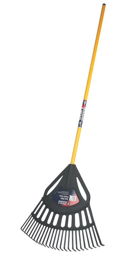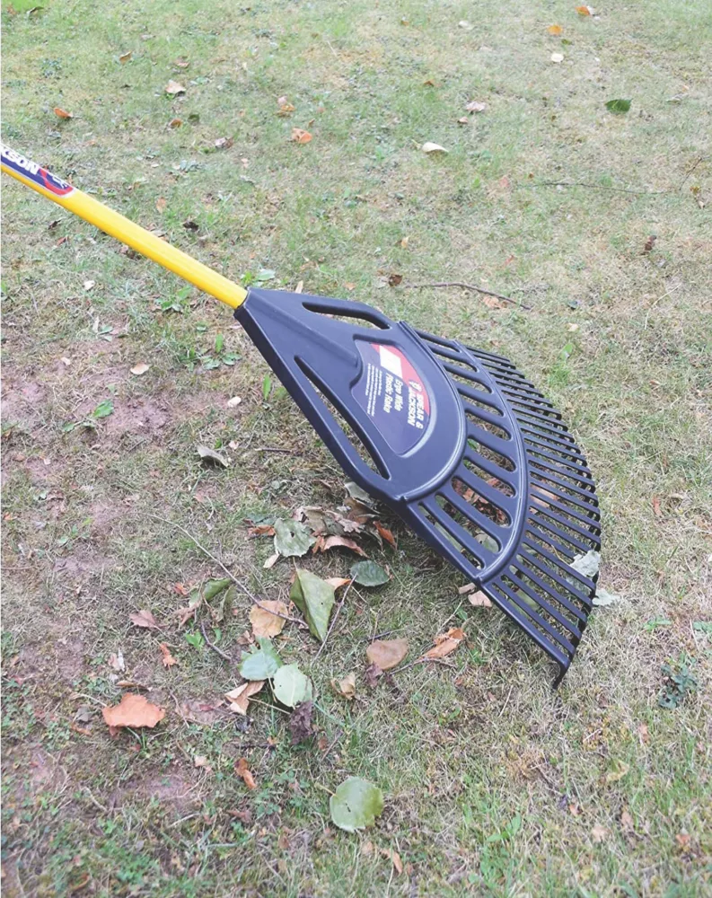 Essential for tidying up the garden. Features 25 strong but flexible tines, an extra-wide head which covers a greater area, helping to save time and effort when clearing up the lawn and an extra-long handle which reduces the need to bend, helping to avoid back strain.