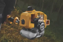 25.4cc 0.7kW 2-stroke petrol engine with jointed shaft, which can be separated for easy transportation and storage. Features single loop soft-grip handle, single harness, and nylon Tap and Go head, which quickly releases the line when tapped on the ground. Supplied with 255mm 3-tooth metal blade, ideal for rough vegetation, brambles and dense bushes. Suitable clothing and visor advised, for protection from debris.
