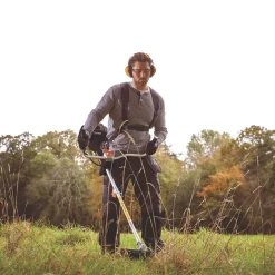 Easy to control 2-in-1 brushcutter and grass trimmer ideal for tidying up edges around lawns, walls, houses and fences or anywhere difficult to reach with a mower. Easy Start+ technology reduces the number of pulls and pulling force required to start the engine. Tri-blade attachment is able to clear thicker brush and thicket with ease. Split shaft allows tool to be stored in 2 halves. Anti-vibration reduces fatigue and strain while in use.